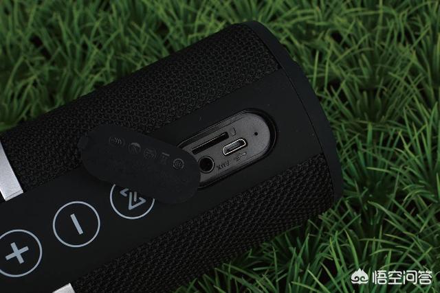 ▲音箱一侧的接口区有厚实的橡胶保护盖,里面的接口包括Micro USB接口、Aux In音频输入以及MicroSD卡扩展插槽。